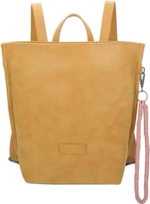 Fritzi33N Vintage Honey Mustard Backpack Kunstleder Damen Rucksack Festival City vegan abnehmbarer Anhänger Vintage-Waschung 35,5 x 25 x 10 cm, Senfgelb
