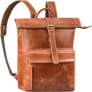 Gregor Moderner Rucksack Leder Damen & Herren Groß Laptop-Rucksack 13-13,3 Zoll als Arbeitsrucksack Uni-Rucksack Alltagsrucksack Notebookrucksack Echtleder Farbe:Kreta - braun