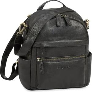 Scarlett Vintage Rucksack Damen Klein Leder Rucksackhandtasche Lederrucksack für iPad & 10.1 Zoll Tablet Handtasche City Ausgehen Shopping Daypack Farbe:schwarz