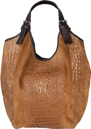 Shopper Echt Leder Damen | Made in Italy, geräumige Umhängetasche, Krokodiloptik | 021930