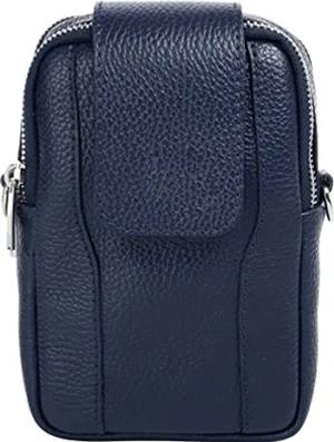 Umhängetasche Echt Leder Damen Made in Italy, verstellbare Umhängetasche, modernes Design, Kompakte Größe blau 020964