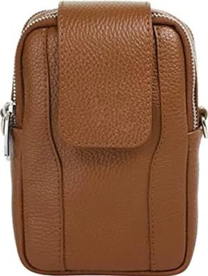 Umhängetasche Echt Leder Damen | Made in Italy, Kompakte Crossbody Tasche mit Smartphonefach & 3 Außentaschen cognac | 021210