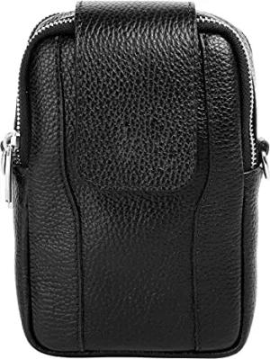 Umhängetasche Echt Leder Damen | Made in Italy, Smartphonefach, Verstellbare Umhängetasche, Klassisches Design schwarz | 021215
