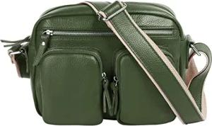 Umhängetasche Echt Leder Damen | Made in Italy, Crossbody Bag mit Außentaschen, Schultertasche mit Smartphonefach grün | 021208