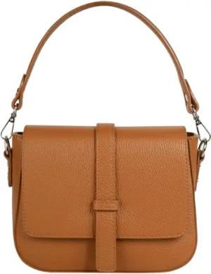 Umhängetasche Echt Leder Damen | Made in Italy, geräumige Handtasche im Clean Chick cognac | 022167