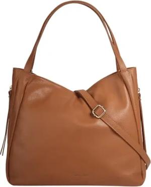 Umhängetasche Echt Leder Damen | Made in Italy, moderne Schultertasche, geräumiger Shopper mit Schultergurt aus Leder cognac | 022170