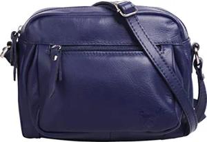 Umhängetasche Echt Leder Damen | Made in Italy, Crossbody-Bag mit 2 Hauptfächern, Umhängetasche mit abnehmbarem Schultergurt blau | 021216