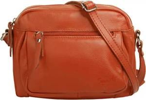 Umhängetasche Echt Leder Damen Made in Italy, verstellbare Umhängetasche, modernes Design, Kompakte Größe orange 020964