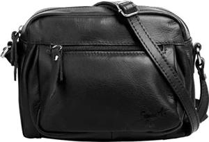 Umhängetasche Echt Leder Damen | Made in Italy | Crossbody mit Drehverschluss | elegante Messenger Bag | Schultertasche mit abnehmbarem Gurt schwarz | 021782