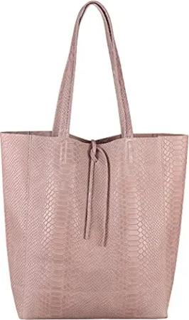 OBC Made in Italy Damen Leder Tasche XXL DIN-A4 Shopper Tote Hobo Bag Henkeltasche Handtasche Umhängetasche Ledertasche Schultertasche (Hellrosa Schlange)