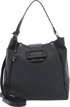 Leder Schultertasche Journey Bucket Bag Black schwarz
