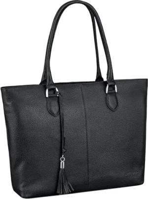 "Nara Zeitlose Leder Shopper Damen Handtasche zum Umhängen groß Vintage Tote Bag Ledertasche Schultertasche Elegante Damen-Tasche Uni Arbeitstasche Echtleder Farbe:schwarz