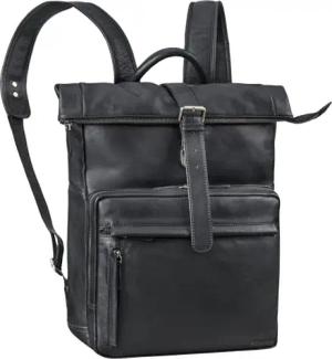 Hudson Vintage Rolltop Rucksack Leder mit Laptopfach 13,3 Zoll, Fahrradrucksack Kurierrucksack für Damen und Herren Farbe:schwarz