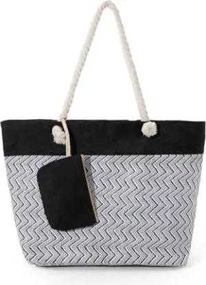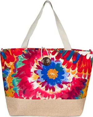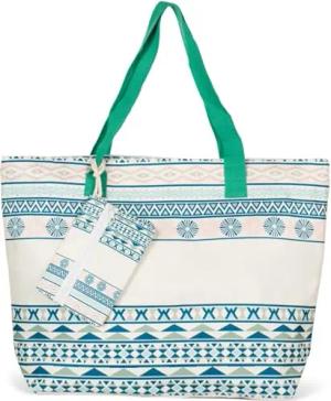 Strandtasche mit Reißverschluss, Große Strandtasche XXL, Shopper Tasche Damen - Praktische Beach bag Umhängetasche Damen Badetasche für Strand und Meer - Retro Chic