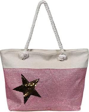Strandtasche XXL mit Reißverschluss - Umhängetasche Damen, Shopper Tasche Damen im Beach Look mit Schulterriemen - Urlaub Must Haves Beach bag - Beach Life