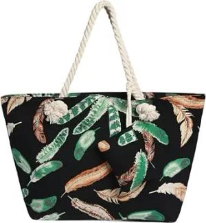 Strandtasche mit Reißverschluss, Große Strandtasche XXL, Shopper Tasche Damen - Praktische Beach bag Umhängetasche Damen Badetasche für Strand und Meer - Federn