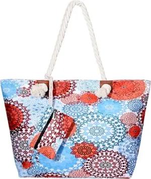 by Descanso Strandtasche Bunte Motive Tasche Umhängetasche mit Reißverschluss aus Baumwolle, Farbe:Rot