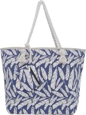 Strandtasche XXL mit Reißverschluss - Umhängetasche Damen, Shopper Tasche Damen im Beach Look mit Schulterriemen - Urlaub Must Haves Beach bag - Federn blau beige