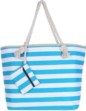 Strandtasche XXL mit Reißverschluss - Umhängetasche Damen, Shopper Tasche Damen im Beach Look mit Schulterriemen - Urlaub Must Haves Beach bag - Streifen türkis weiß