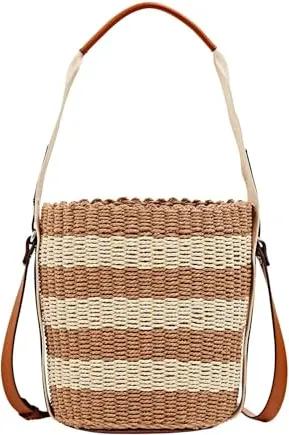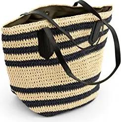 Gestreifte Schultertasche aus Papierbast