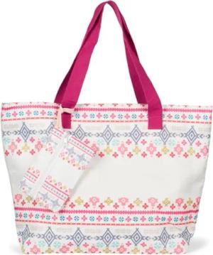 Große Strandtasche mit buntem Azteken Boho Muster | Damen Schultertasche mit Reißverschluss & Extra-Täschchen | 57,5 x 40 x 15 cm, Farbe:Himbeer-Creme