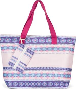 Große Strandtasche mit buntem Azteken Boho Muster | Damen Schultertasche mit Reißverschluss & Extra-Täschchen | 57,5 x 40 x 15 cm, Farbe:Himbeer-Rose