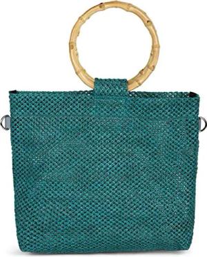 Damen Henkeltasche mit Bambus Henkel in halb transparenter Häkel Optik, Handtasche, Tasche 02012286, Farbe:Petrol