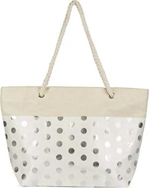 Große Strandtasche mit Metallic Punkte Print | Damen Shopper mit Kordelhenkel und Reißverschluss | Badetasche im Boho Look | 56 x 38 x 17 cm, Farbe:Beige-Silber