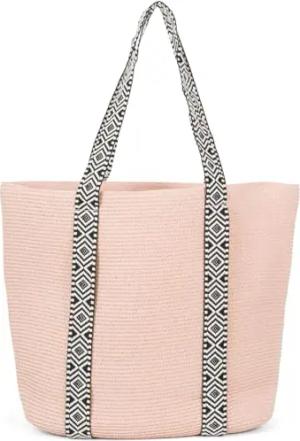 Papierstroh Strandtasche mit Azteken Muster Bändern | Damen Flechttasche mit Reißverschluss | 50 x 37 x 13 cm, Farbe:Altrose