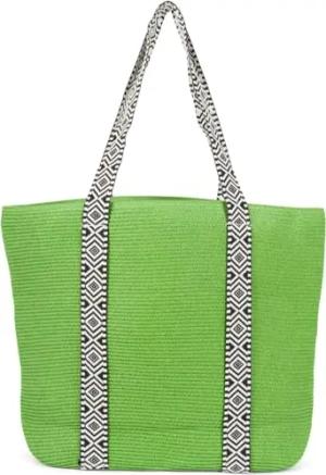 Papierstroh Strandtasche mit Azteken Muster Bändern | Damen Flechttasche mit Reißverschluss | 50 x 37 x 13 cm, Farbe:Grün