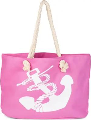 XXL Strandtasche mit Anker Print | maritimer Look in Flechtoptik | Shopper Badetasche 57 x 33 x 32 cm, Farbe:Pink-Weiß
