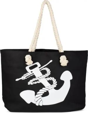 XXL Strandtasche mit Anker Print | maritimer Look in Flechtoptik | Shopper Badetasche 57 x 33 x 32 cm, Farbe:Schwarz-Weiß