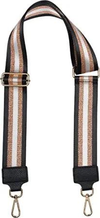 Breiter Taschen Schulterriemen verstellbar mit Metallic Streifen Muster, Wechsel Taschengurt, Handyband, Handykette 02013029, Farbe:Schwarz-Rosegold