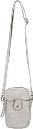 Damen 2 in 1 Mini Bag Umhängetasche mit genarbter Oberfläche, Geldbörse, Handytasche, Schultertasche 02012364, Farbe:Hellgrau