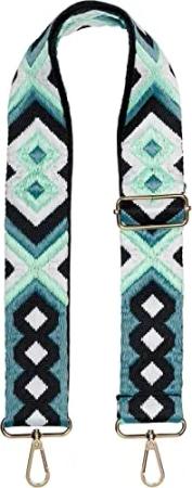 Taschen Schulterriemen verstellbar mit Buntem Ethno Muster, Wechsel Taschengurt, Karabiner, Handyband 02013024, Farbe:Mint-Petrol-Schwarz-Weiß
