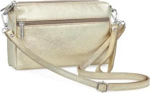 kleine Leder Umhängetasche Crossbody Bag elegante Damen Tasche mit 3 Fächern - CLASSIC LINE - Modell No.815 - Made in Italy, Farbe:gold metallic