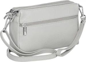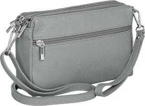 kleine Leder Umhängetasche Crossbody Bag elegante Damen Tasche mit 3 Fächern - CLASSIC LINE - Modell No.815 - Made in Italy, Farbe:hellgrau