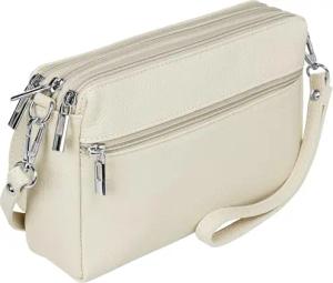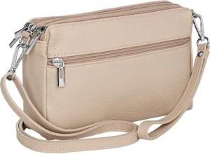 kleine Leder Umhängetasche Crossbody Bag elegante Damen Tasche mit 3 Fächern - CLASSIC LINE - Modell No.815 - Made in Italy, Farbe:hell beige