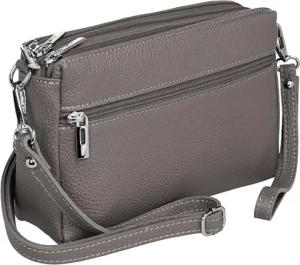 kleine Leder Umhängetasche Crossbody Bag elegante Damen Tasche mit 3 Fächern - CLASSIC LINE - Modell No.815 - Made in Italy, Farbe:grau
