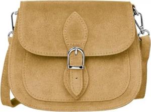 Leder Umhängetasche Dirndltasche Vintage Tasche kleine Trachtentasche Damen Handtasche aus Wildleder - CLASSIC LINE - Modell No.831 - Made in Italy, Farbe:camel