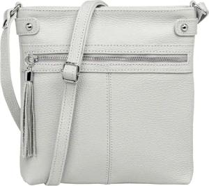 mittelgroße Leder Crossbody Messenger Bag Umhängetasche klassisch sportliche Damen Tasche - CLASSIC LINE - Modell No.825 - Made in Italy, Farbe:hellgrau