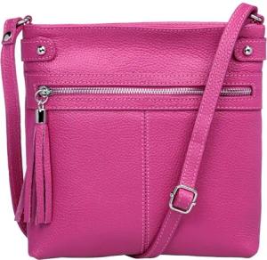 mittelgroße Leder Crossbody Messenger Bag Umhängetasche klassisch sportliche Damen Tasche - CLASSIC LINE - Modell No.825 - Made in Italy, Farbe:pink