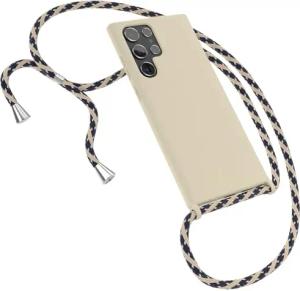 Handykette - Verstellbares Taschenband kompatibel mit Galaxy S22 Ultra 5G, Schulterriemen, Handykordel mit Silikon Hülle, Umhängetasche, Beige Blau Silber