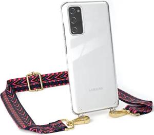 Handykette - Verstellbarer Trageriemen kompatibel mit Samsung Galaxy S20 FE / S20 FE 5G, Schulterriemen, Handykordel mit Case, DIY Gürteltasche mit Hülle, Pink/Blau - Metallstücke Gold
