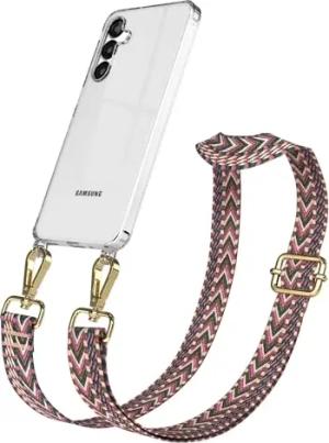Handykette - Verstellbares Taschenband kompatibel mit Galaxy A16, Schulterriemen, Handykordel mit Silikon Hülle, Umhängetasche, Rot Braun Gold