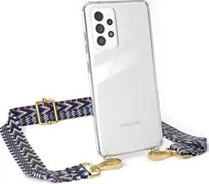 Handykette - Verstellbares Taschenband kompatibel mit Galaxy A52, Schulterriemen, Handykordel mit Silikon Hülle, Umhängetasche, Blau Weiß Gold