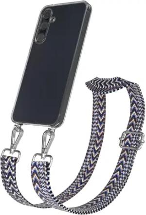 Handykette - Verstellbares Taschenband kompatibel mit Galaxy A55, Schulterriemen, Handykordel mit Silikon Hülle, Umhängetasche, Blau Weiß Silber