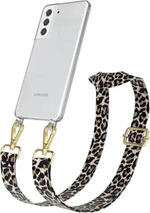 Handykette - Verstellbares Taschenband kompatibel mit Galaxy S21 FE 5G, Schulterriemen, Handykordel mit Silikon Hülle, Umhängetasche, Leo - Schwarz Beige Gold