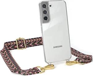 Handykette - Verstellbares Taschenband kompatibel mit Galaxy S22 5G, Schulterriemen, Handykordel mit Silikon Hülle, Umhängetasche, Beere Pink Gold