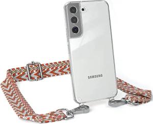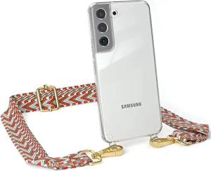 Handykette - Verstellbares Taschenband kompatibel mit Galaxy S22 5G, Schulterriemen, Handykordel mit Silikon Hülle, Umhängetasche, Blau Rot Gold